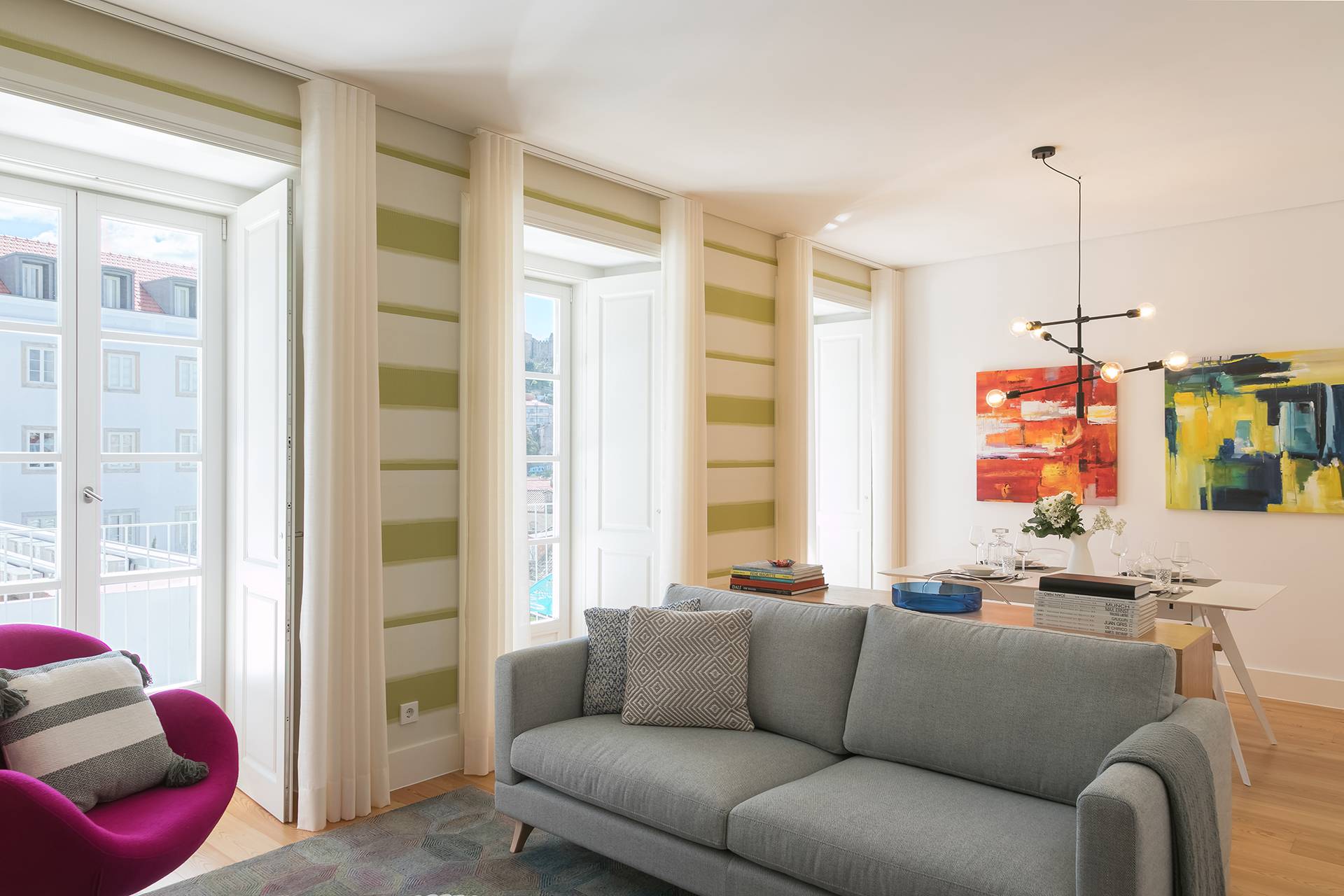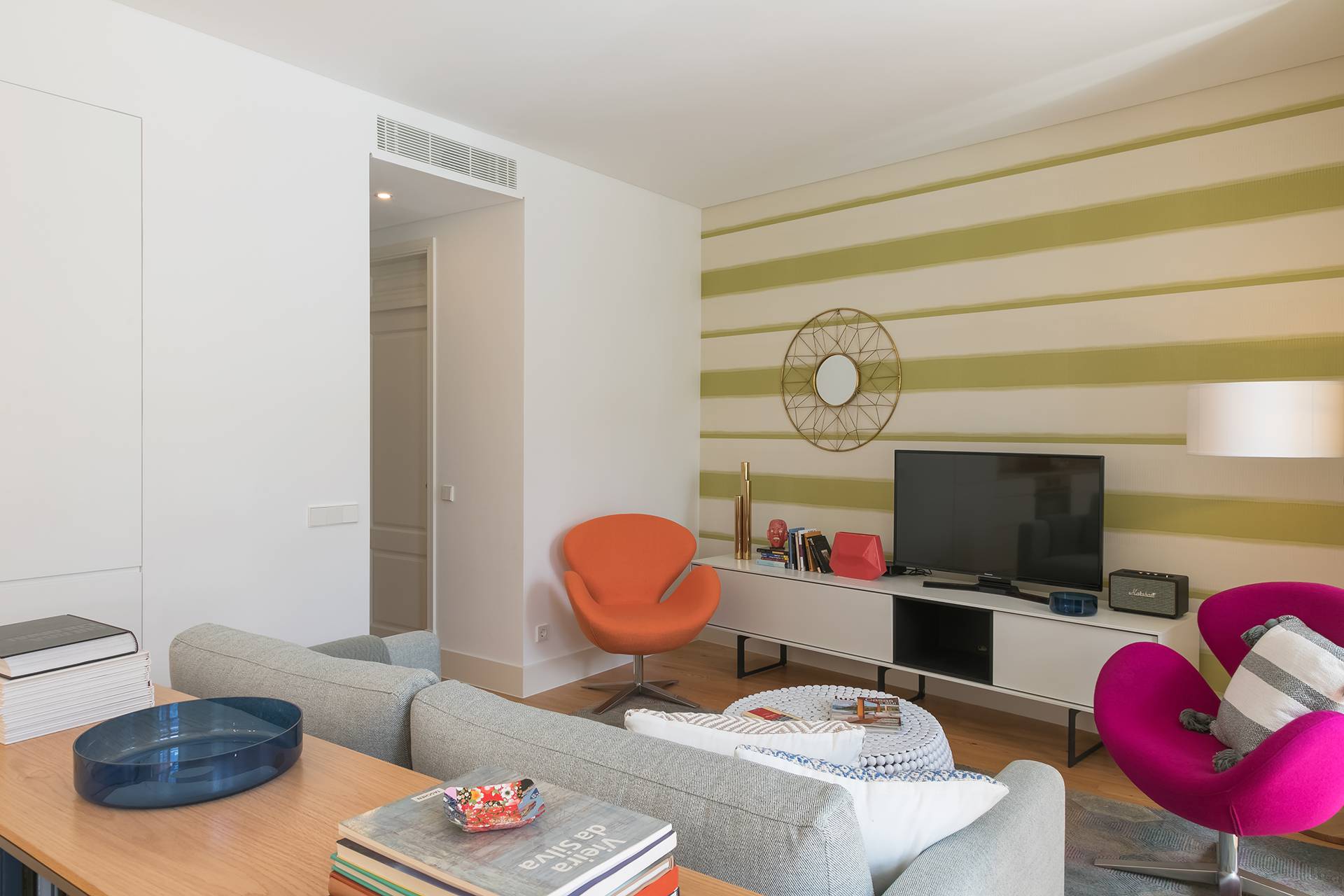 Décoré avec beaucoup de goût et d'originalité, ce luxueux appartement spacieux et élégant avec balcon à Lisbonne est climatisé et dispose d'une place de parking dans une résidence de grand standing (immeuble historique restauré) avec piscine en plein air et salle de sport.