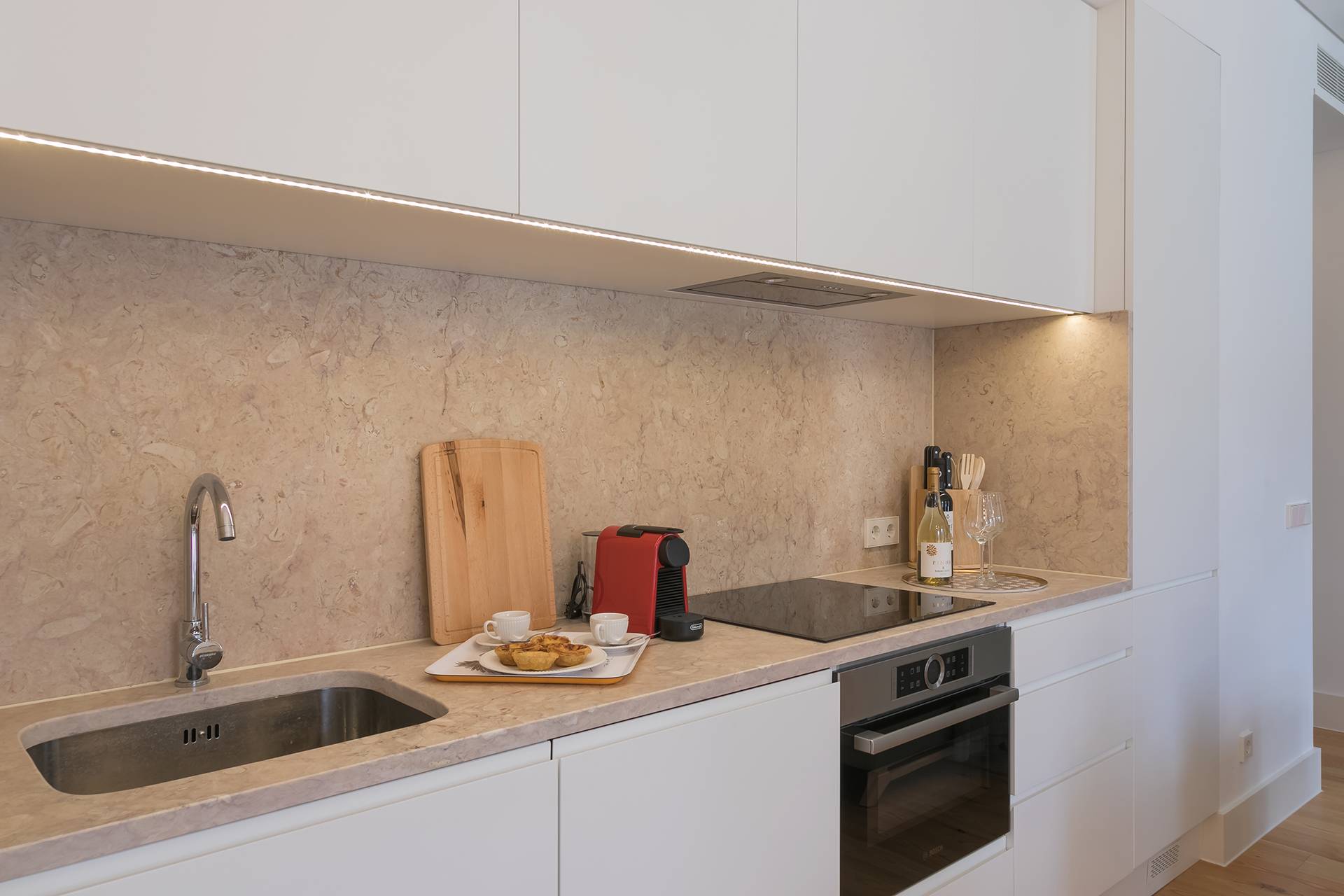Le quartier de cet appartement spacieux et élégant avec balcon à Lisbonne a aussi vu fleurir les essais très réussis de jeunes créateurs. L'atelier Porta 16 propose des cadeaux fait main originaux et délicats, comme des bijoux, des céramiques et azulejos, et des objets de décoration.