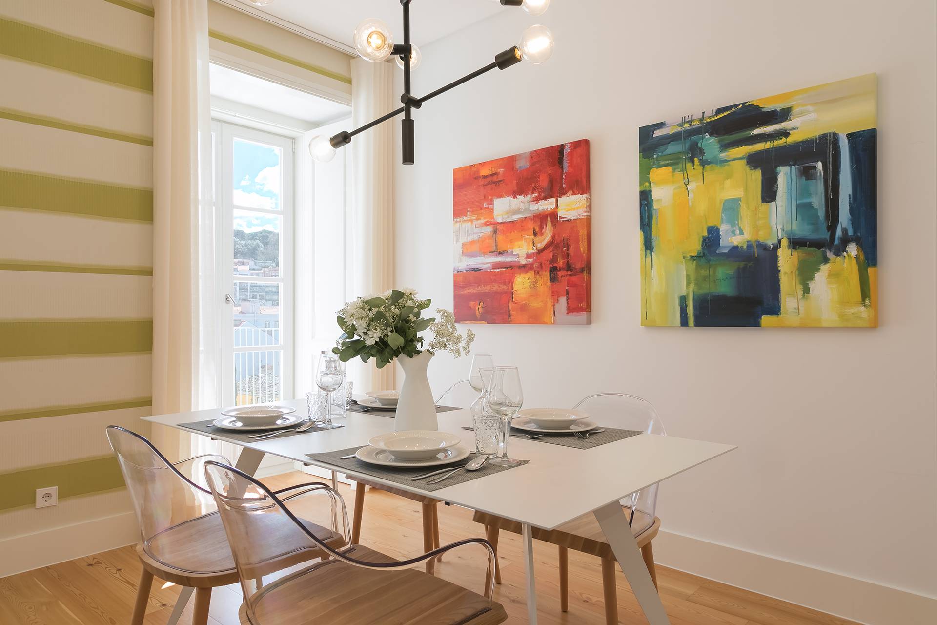 Depuis cet appartement spacieux et élégant avec balcon à Lisbonne, on découvre aussi une gastronomie innovante, avec des lieux portés par une exigeante philosophie de fraîcheur et d'originalité. On va chez Augusto Lisboa pour goûter, entre autres, leur tiramisu pistache framboise. Pour un menu végétarien plein d'inventivité, c'est au Bruta Flor Café ; quant à Ma Lingua, l'espace, café et restaurant, accueille aussi des expositions et des concerts live.